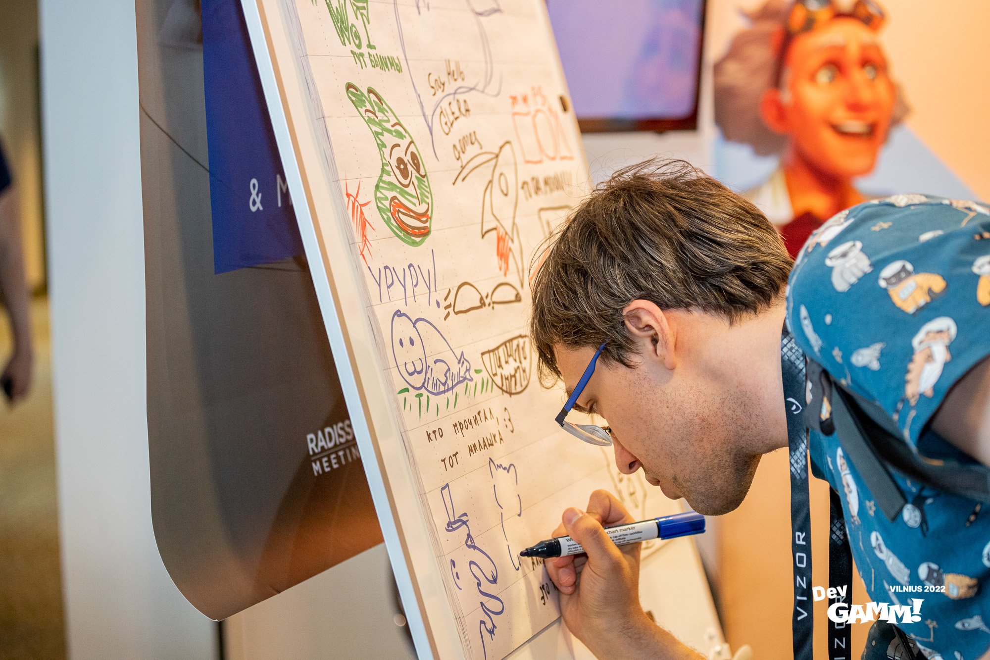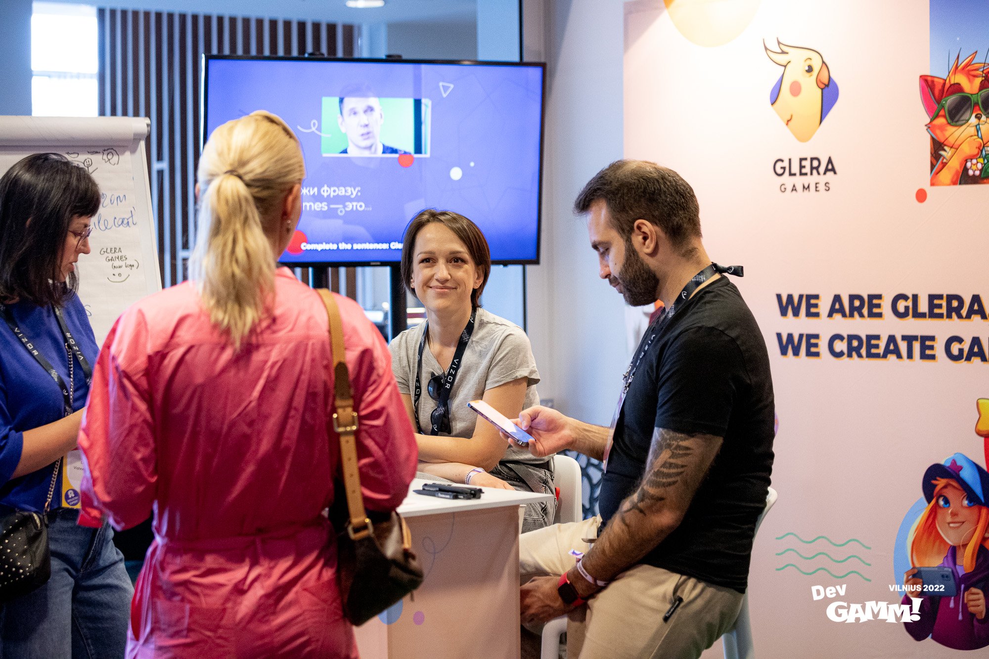 Алёна Журавлёва – HR Director: “Для нас было важно принять участие в этой конференции, так как головной офис компании Glera Games располагается в Вильнюсе уже более 6 лет. По этой же причине мы приняли решение выступить спонсором мероприятия в этом году. Наш стенд привлек большое количество посетителей, которым мы с удовольствием рассказывали про историю компании, игры, вакансии, корпоративную культуру и ценности. Особенно запомнились жаркие дискуссии о трендах и челленджах современной геймдев индустрии. Всегда интересно услышать мнение коллег и почерпнуть для себя что-то новое. Гости конференции принимали активное участие в стендовом квесте и с большим энтузиазмом оставляли для нас рисунки и приветы на специальной маркерной доске. Благодаря этому мы смогли не только привлечь аудиторию, но и создать площадку для дополнительного нетворкинга. Все приветы и рисунки гостей мы сохраним в офисе компании”.